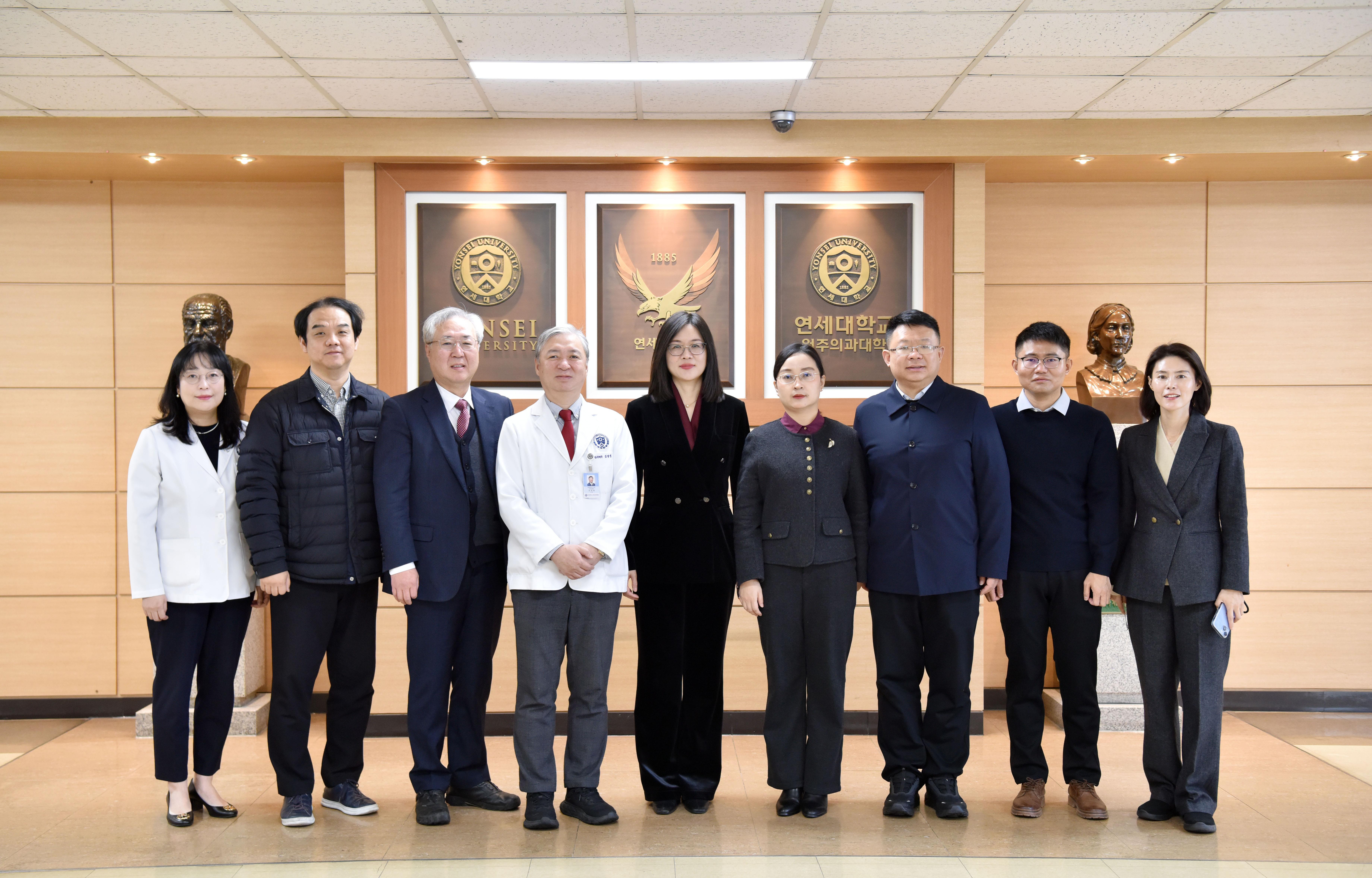 1月19日上午,代表团一行访问了延世大学原州校区医学院,双方围绕学生实习交流、教师互访、专题讲座以及两校在CAR-T细胞治疗领域的共同研究等合作内容进行了深入交流与探讨。会后,代表团参观了延世大学校原州世福兰斯医院。下午,王媛与延世大学副校长河演燮进行了深入会谈。河演燮副校长回顾了两校近几年的交流活动,希望未来进一步拓展合作层次,并期待回访。随后,双方围绕联合授课、硕博联合培养等具体合作方案进行了细化讨论,初步商定开设共建课程。座谈结束后,我院学生与延世大学相关实验室博士生开展了科研项目交流活动。
