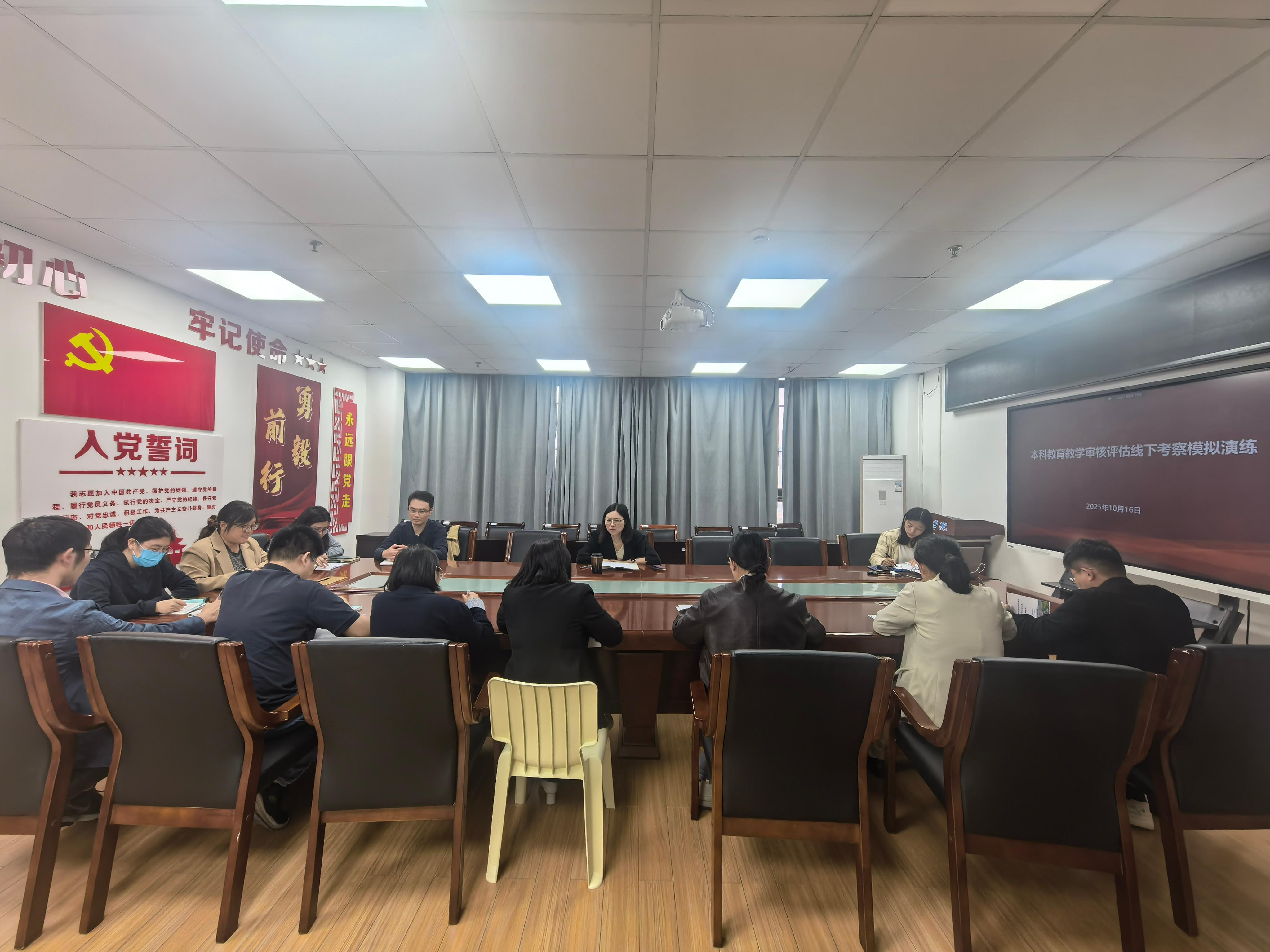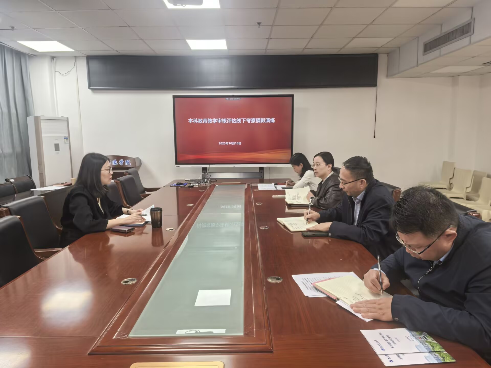 为全面检验并进一步提升学院迎接教育部本科教育教学审核评估的准备工作水平,确保以最佳状态迎接10月20日的正式评估,10月16日下午,学院举行了本科教学审核评估模拟演练。分管校领导、副校长王媛亲临学院检查指导,学院领导班子全体成员、教研室主任及教师代表参加了本次演练。