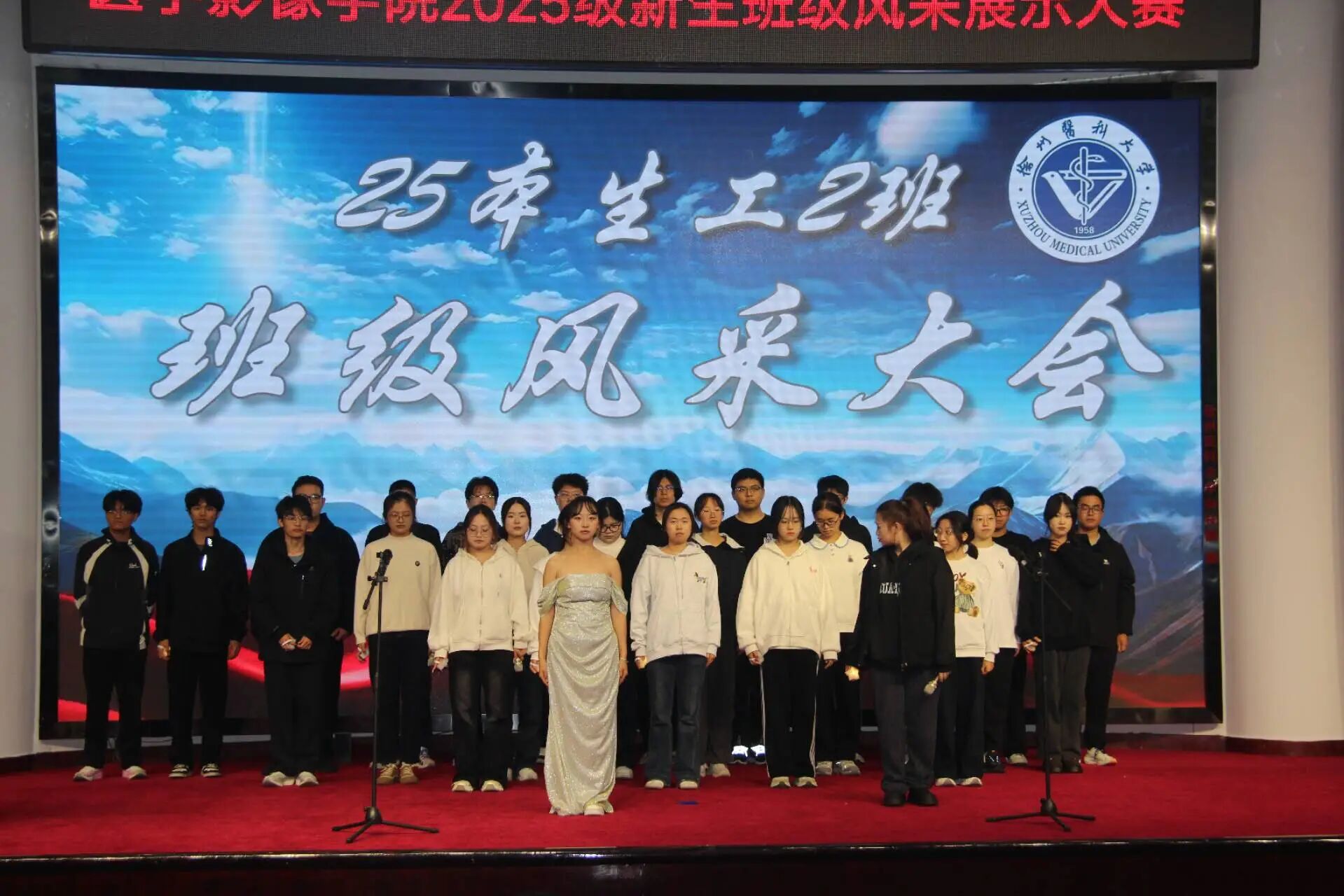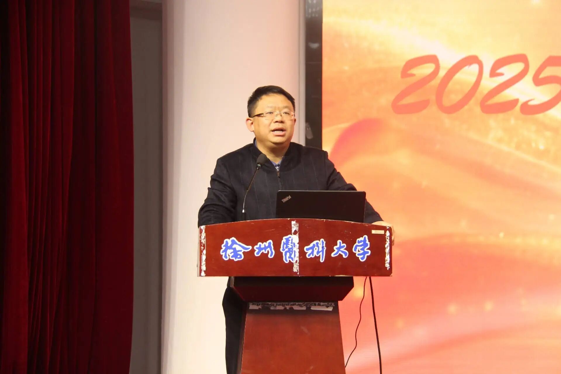 最后由徐州医科大学医学影像学院副书记谢广明致辞。他表扬25级同学们入学后在各类舞台上初显卓越风采,鼓励各班级以零挂科和四级高通过率作为班级目标而努力。希望同学们相信自己,可以在未来发展自己,取得更好的成绩。