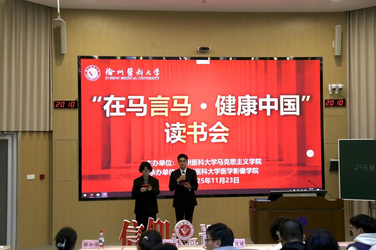 11月23日晚,主二大教室灯火通明,以“在马言马·健康中国”为主题的读书会在此举行。活动通过经典研读明晰健康中国内涵,在思想碰撞中探寻实践路径,营造笃学深思、心系民生的校园氛围,推动学风与思想建设。团委书记葛媛媛、教务处副处长徐明、组织部副部长解加伟、学工部副部长王以雷,以及马克思主义学院习近平新时代中国特色社会主义思想教研室主任赵光侠等担任评委,提供专业指导。
